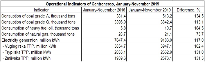 According to the State Property Fund of Ukraine, Centrenergo has large debts to other coal suppliers. For example, Centenergo indebted UAH 362.7 million to Shakhtarsktrans LLC. Ukrdoninvest Trading LLC is suing Centrenergo to recover UAH 1.442 billion due. Also, Centrenergo did not pay UAH 92 million to the state-owned Lvivvughiliya for the supplies of coal during October-December 2019. Amid of Centrenergo's debts problems, it is worth mentioning that in January-November 2019, compared to the same period of 2018, the company increased its consumption of anthracite by 34.5%, up to 513.2 thousand tons, as well as consumed 3,8 millions tons of gas coals, or 13.1% more than during January-November 2018.