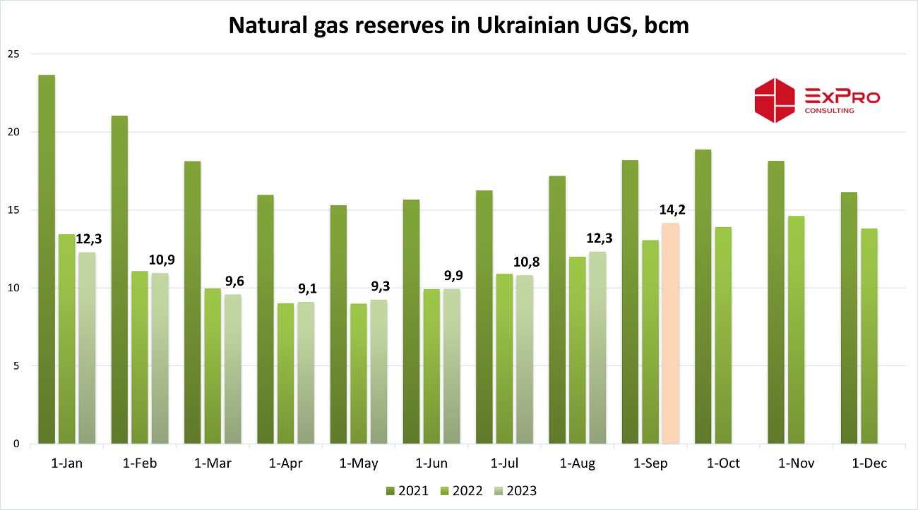 By the beginning of September, according to ExPro forecasts, gas reserves in Ukrainian UGS may exceed 14.1 bcm, of which 1.9 bcm of natural gas will be stored in the "customs warehouse".