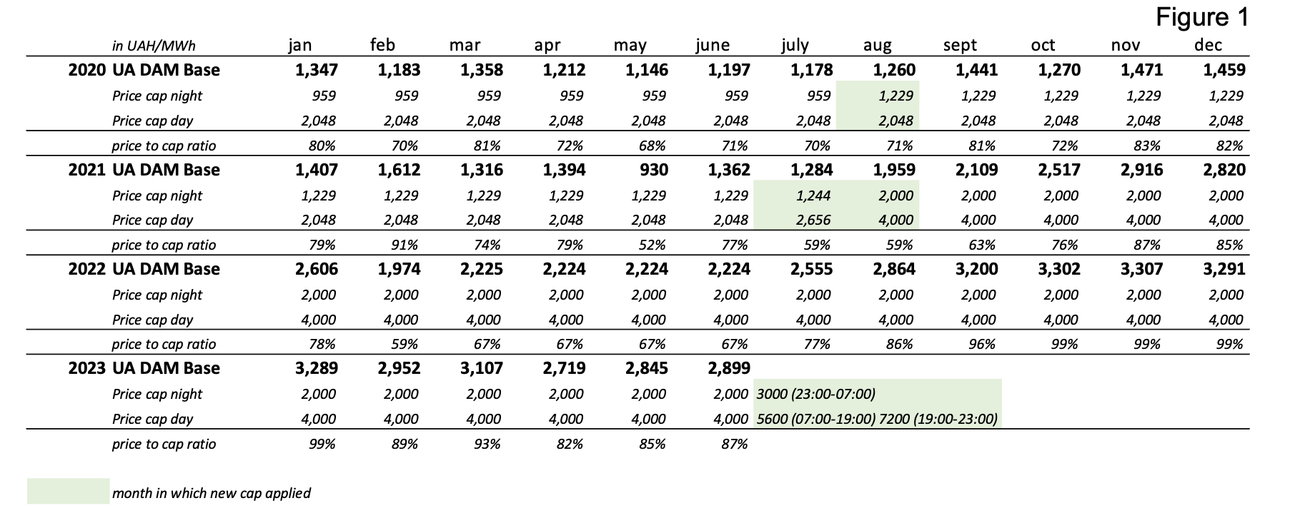 - the lower cap price is UAH10/MWh;
